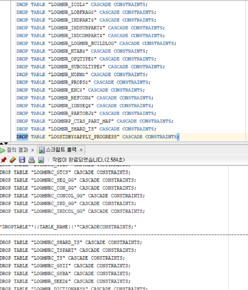 1. 존재하는 모든 테이블 DROP 문장 출력